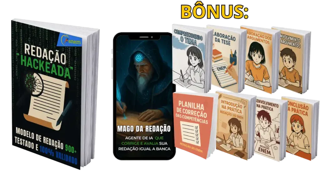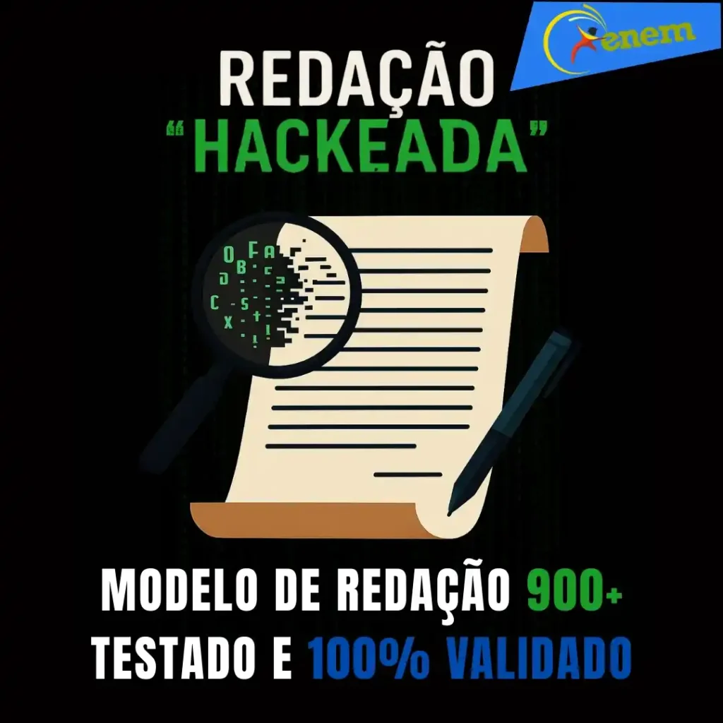 A Redação “Hackeada” é um guia completo e prático para conquistar a nota máxima na redação do ENEM. Com modelos validados, passo a passo detalhado e ferramentas de correção.
