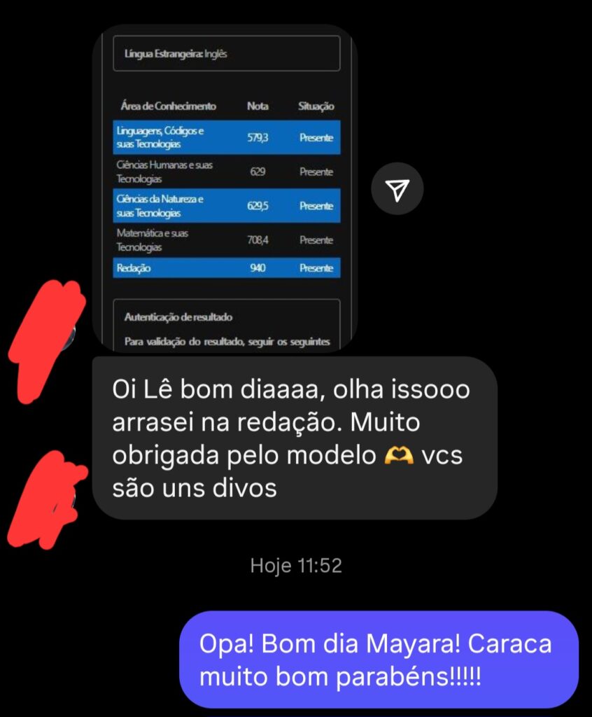 Sim! O modelo foi testado por várias pessoas que alcançaram ótimas notas. Com Redação Hackeada, você aprende exatamente o que precisa fazer para garantir uma redação de qualidade, e muitos alunos já provaram sua eficácia.
